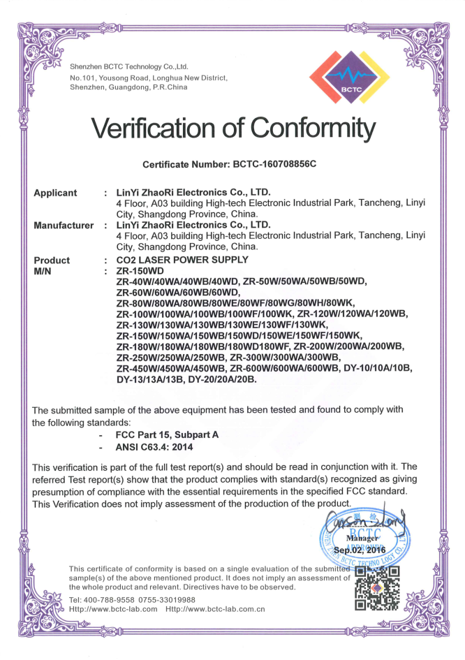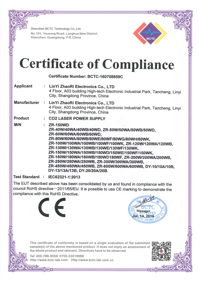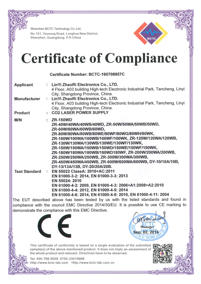 • 山東朝日電子有限公司是一家從事CO2激光電源研發(fā)、生產(chǎn)、銷售于一體的專業(yè)廠家,主要產(chǎn)品為40W/50W/60W/80W/100W/120W/130W/150W/200W/300W/400W二氧化碳激光電源。公司自2003年成立以來,始終堅(jiān)持“以質(zhì)量求生存,靠信譽(yù)謀發(fā)展”的理念.公司擁有業(yè)界高素質(zhì)管理人才和技術(shù)精英,所有原材料都經(jīng)過嚴(yán)格細(xì)致的檢測檢驗(yàn),生產(chǎn)流程嚴(yán)格貫徹執(zhí)行ISO9001質(zhì)量管理體系。卓越的品質(zhì)、合理的價(jià)格和全體員工的不懈努力使我們的公司已穩(wěn)步走在行業(yè)的前列。
